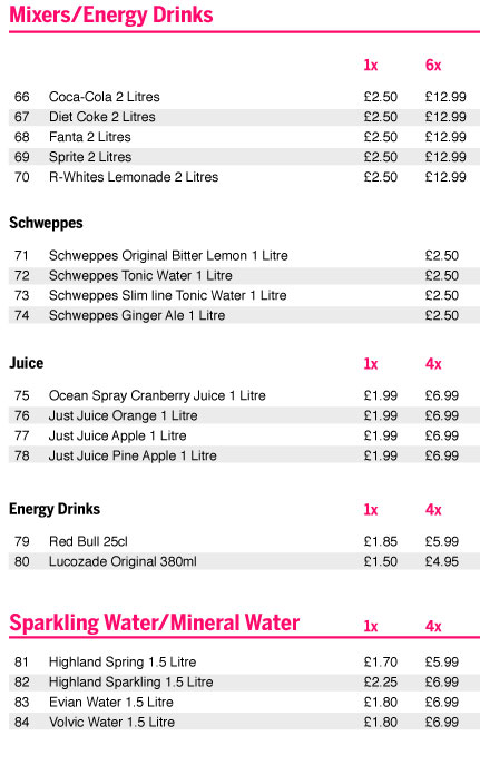 | If you need to speak to our team or would like to request a product not on our list, call us and a member of staff will be happy to help you choose items to cater for your party. |